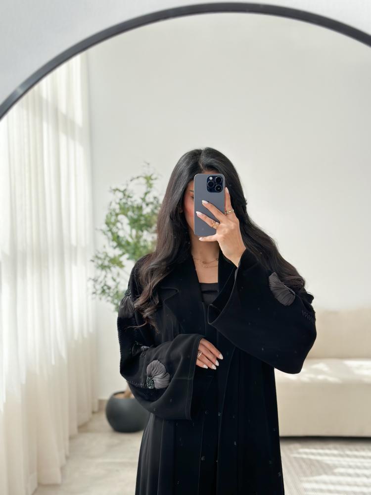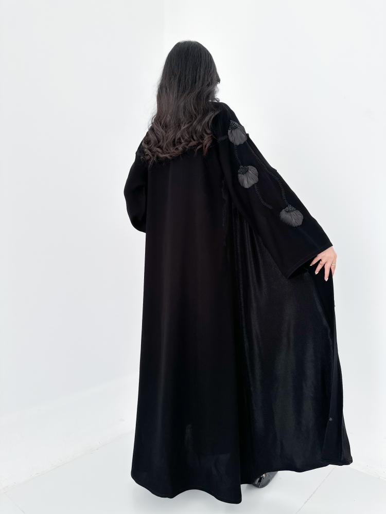 عباية قصة نصف كلوش كريب الفاخر قلاب مع شك اكمام