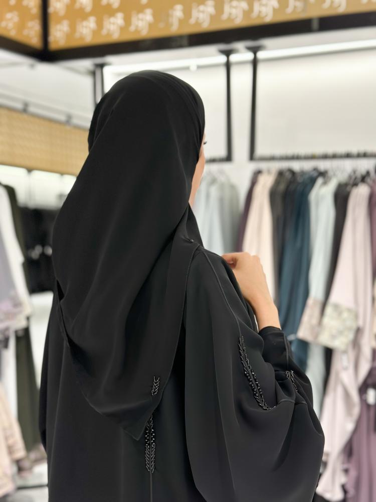 عباية جومانة C بقصّة نص كلوش من قماش بريق الماس الصيفي مع قيطان ناعم وشُك أنيق. تصميم عملي وخفيف بمقاسات 52–60؛ مناسب للعمل والمشاوير.